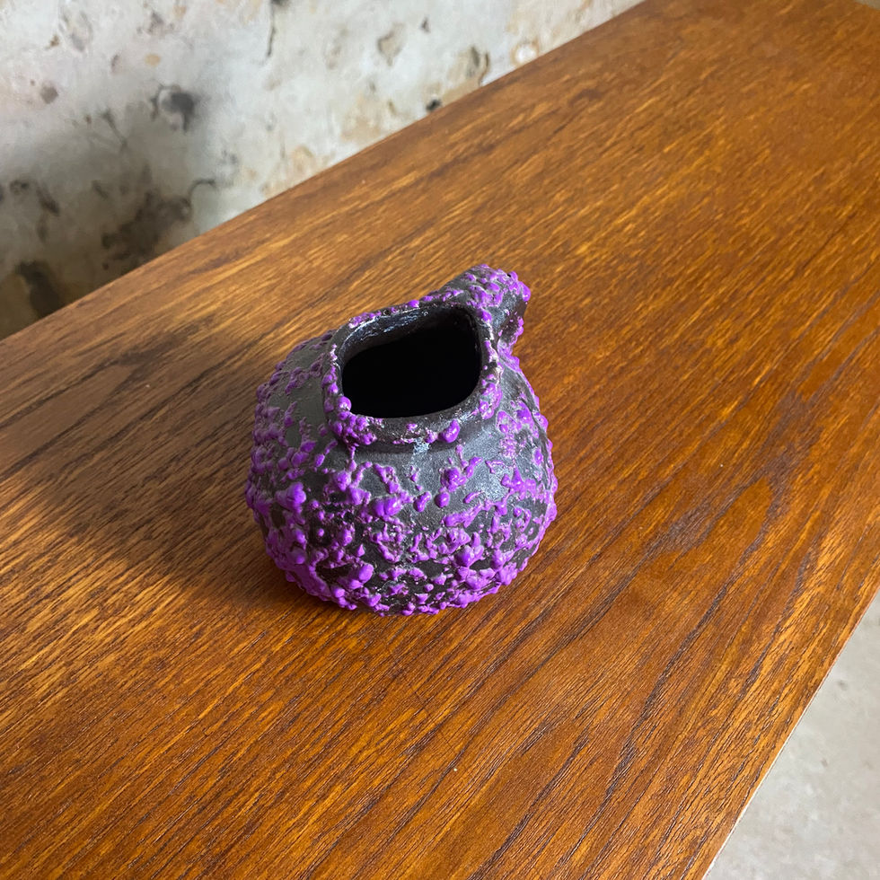 Ce vase en céramique séduit par sa forme irrégulière et sa texture brute, évoquant une roche volcanique figée dans le temps. Son émail violet intense lui confère une présence unique, parfaite pour ajouter une touche artistique et originale à votre décoration. Idéal pour une fleur séchée ou simplement en tant qu’objet décoratif au caractère affirmé.